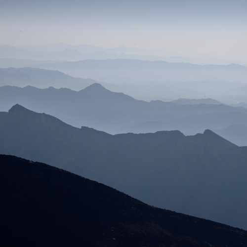 einer kurzen Panoramawanderung genießen wir den Blick über das zerklüftete Hajar-Gebirge.